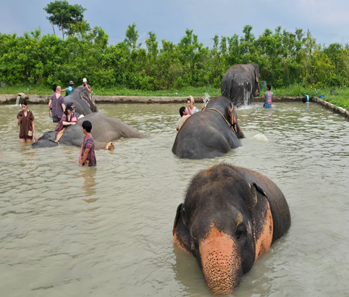 - Enjoy watching the elephants cover themself for rejuvenating mud spa