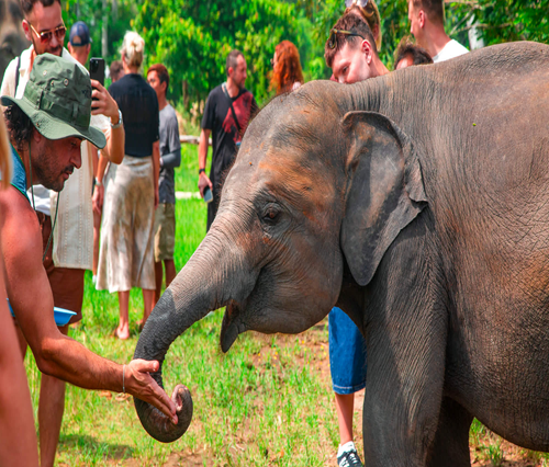 Our quick “Feeding” program offers a convenient way to connect with elephants while supporting their welfare. Hand-feed our resident elephants nutritious food and observe their natural behaviors under the guidance of caring staff who prioritize elephant health and happiness.
